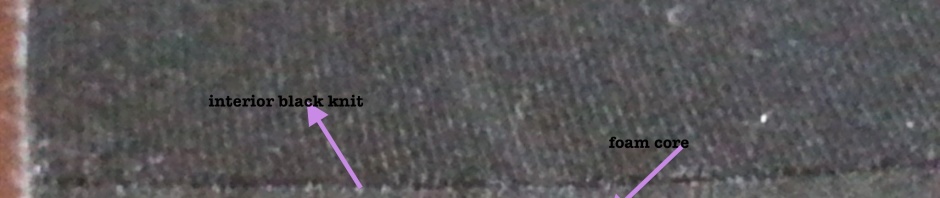 A cross-section of Neoprene shows the defining foam thickness indicative of the product. The cross-section photos also show the ribbed knit texture of the laminated fabrics.