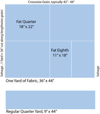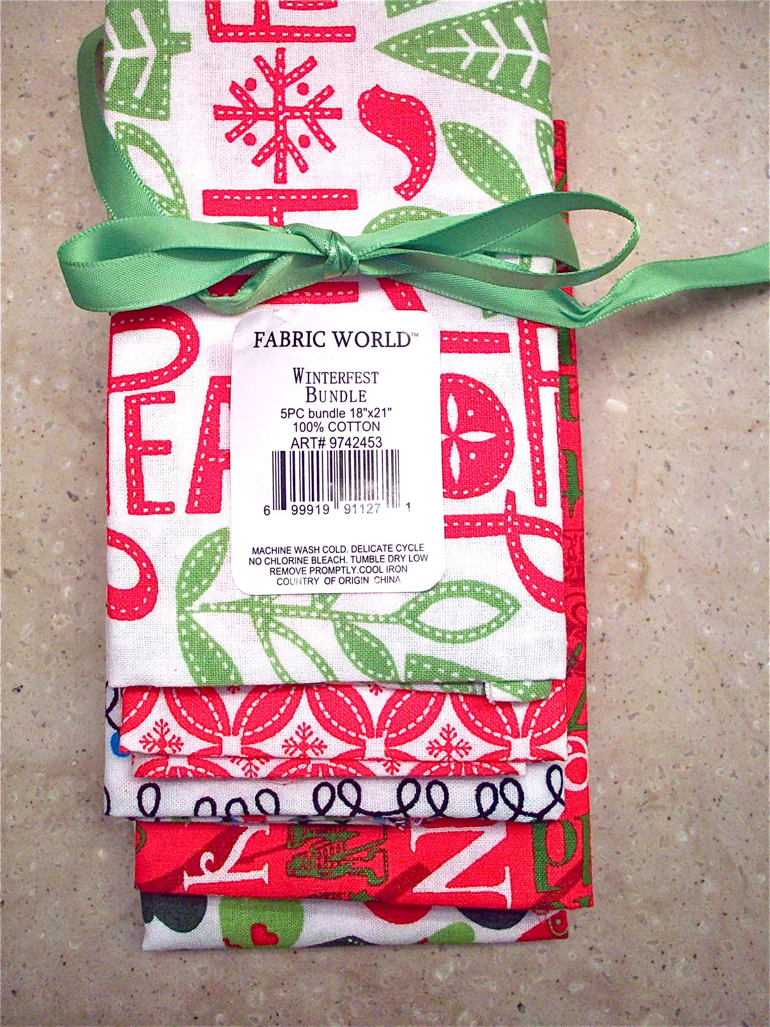 Bought two ‘on sale’ Fat Quarters packets with four cotton fabrics 18″ X 21″. A Fat Quarter is a quilter’s term for a quarter of a 36″ X 44″ piece of fabric.