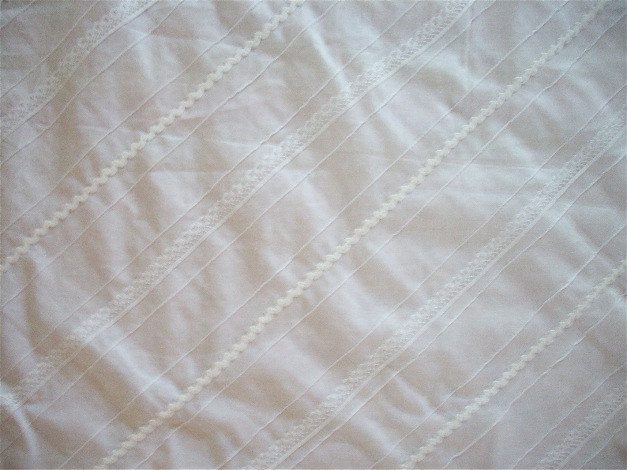 100% white cotton with diagonal embellishments.