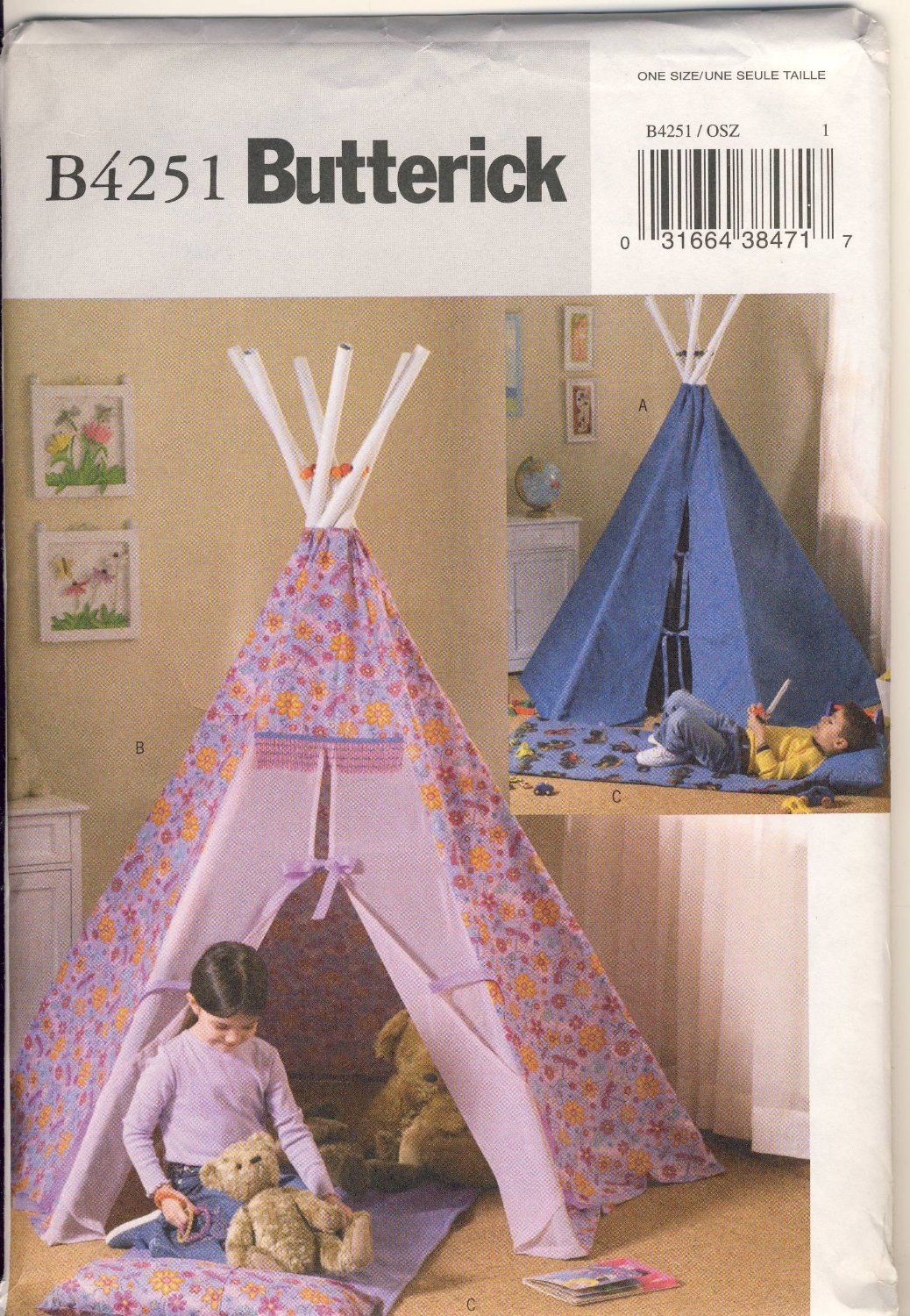 Using Butterick 4251 and 8+ yards of 60″ wide fabric, the TeePee was constructed with much bunching, folding, crunching, twisting. The worst part was cutting it out. I have the floor space but my robotic knee isn’t too crazy about crawling around on a hardwood floor. The worst part was getting the pattern on the fabric in a semblance of straight grain. Wasn’t too concerned as tent is not hanging from a horizontal support, but did need an approximation of straight grain.