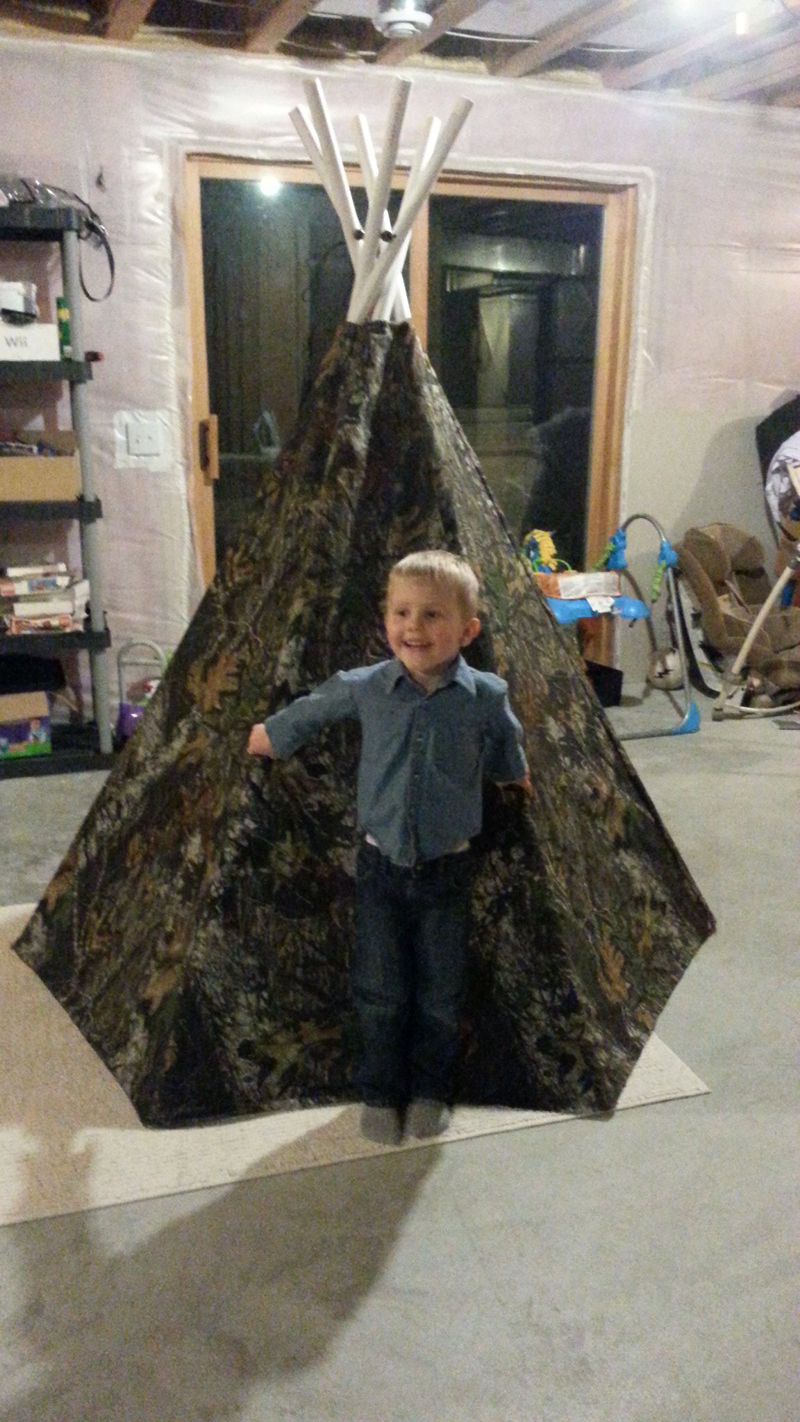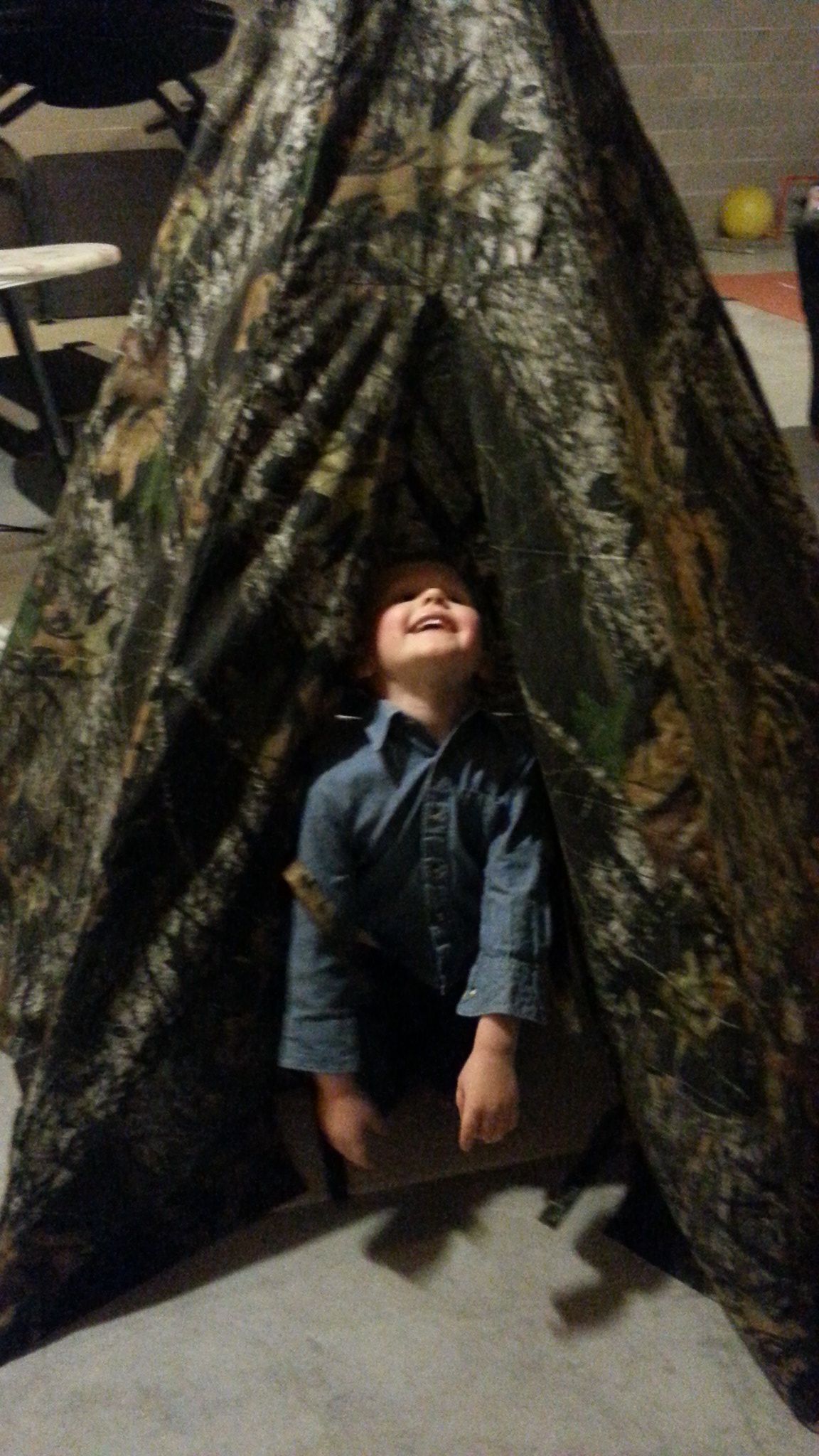 This was the 2014 Christmas present for my two Grandsons. This is Grayden, 4, and he immediately made this his Turkey Hunting Blind. Brother Oliver, 7, was too busy with ipad and Minecraft.