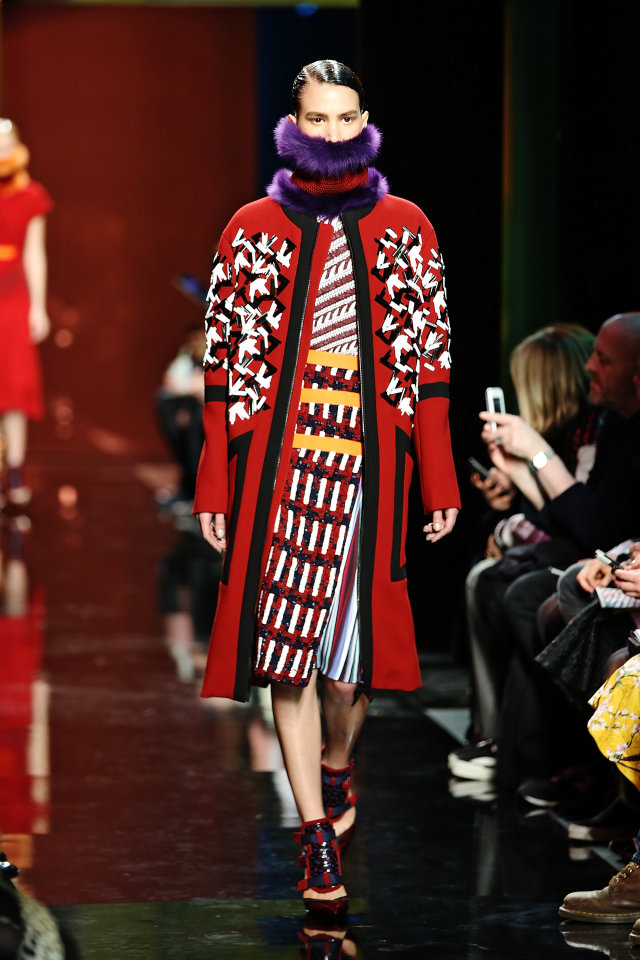 The Pilotto colorways, graphics, mountain landscape prints, stained-glass mosaics, knits, textures–and the use of fur–all, all are inspired creativity.