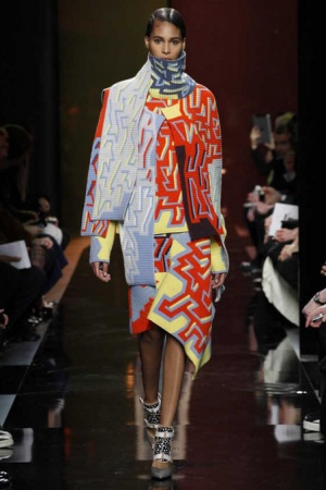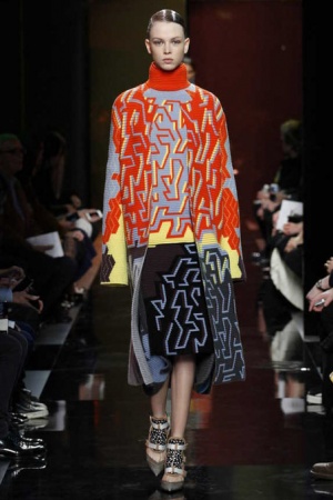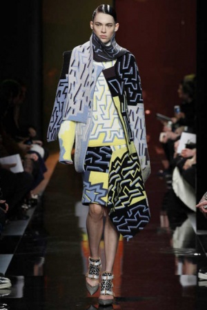 Peter Pilotto and his design partner, Christopher de Vos presented their Fall 2014 RTW collection February 17th and it is Magnificent, Fantastic, Marvelous, Wonderful, and…And, it is Wearable; not just for anorexic twenty somethings, but for Everyone, probably due to the long, lean athletic cut throughout all categories–dresses, coats, evening, sportswear.