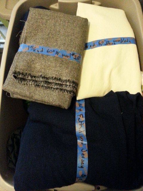a 1 5/8 yard piece of black wool tweed, a 1.5 yd wool/poly tricotine, huge hunk of felted wool jersey + much more